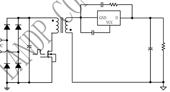 VCC供電:芯片內(nèi)部集成了VCC供電技術,能夠在不需要輔助繞組供電的情況下,保證VCC電壓穩(wěn)定.當系統(tǒng)上電后,通過內(nèi)置MOS的體二極管對輸出電容充電,當VCC電壓達到開啟閾值時,芯片內(nèi)部控制電路開始工作。