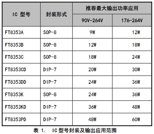 FT8353x系列共有多種型號(hào),每種型號(hào)針對(duì)不同的輸出功率范圍和封裝形式進(jìn)行了優(yōu)化,以滿足多樣化的LED照明應(yīng)用需求。具體型號(hào)及其特點(diǎn)如下: