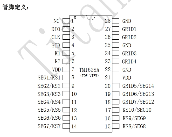 TM1628A天微SOP28封裝 按鍵掃描驅動LED面板顯示驅動芯片