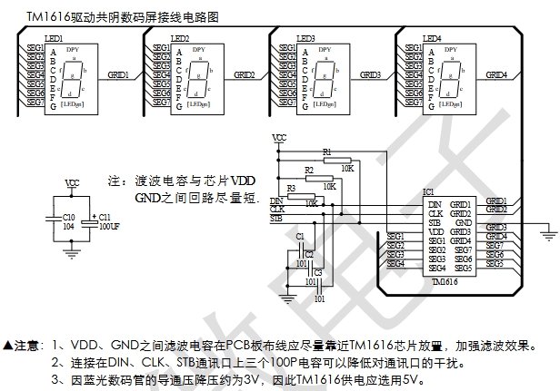 TM1616是LED(發(fā)光二極管顯示器)驅(qū)動(dòng)控制專用電路,內(nèi)部集成有MCU 數(shù)字接口、數(shù)據(jù)鎖存器、