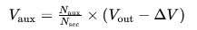 Naux 和 Nsec 分別是輔助繞組和次級繞組的匝數。