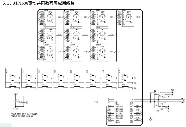 AIP1638內(nèi)置8×3bit的鍵盤掃描功能,能夠?qū)崿F(xiàn)對鍵盤輸入的高效檢測。這一功能使得AIP1638不僅適用于顯示控制,還可以作為鍵盤輸入接口,實現(xiàn)人機交互功能,大大提高了芯片的實用性。