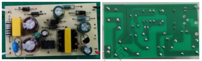 PCB設計對于電源的性能和穩定性至關重要。本方案采用單面板設計,元件分布合理,布線簡潔明了。以下是PCB的頂面和底面布局圖:
