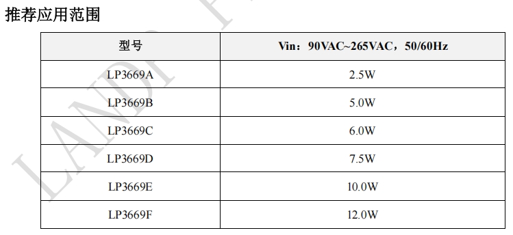 LP3669系列提供了從2.5W到12.0W的多種輸出功率選擇,能夠滿足從低功耗到高功耗設(shè)備的不同需求。這種多樣化的功率選擇使得工程師可以根據(jù)具體應(yīng)用場(chǎng)景選擇最適合的型號(hào)。