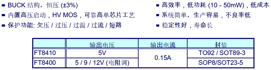 輸出電壓:FT8410為5V,FT8400為12V