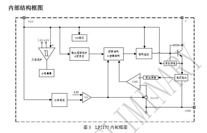 LP2177 內部集成高壓功率管,采用恒壓控制模式, 系統(tǒng)可工作于CCM和DCM模式。采用特有的PFM控制方式,改善音頻特性。