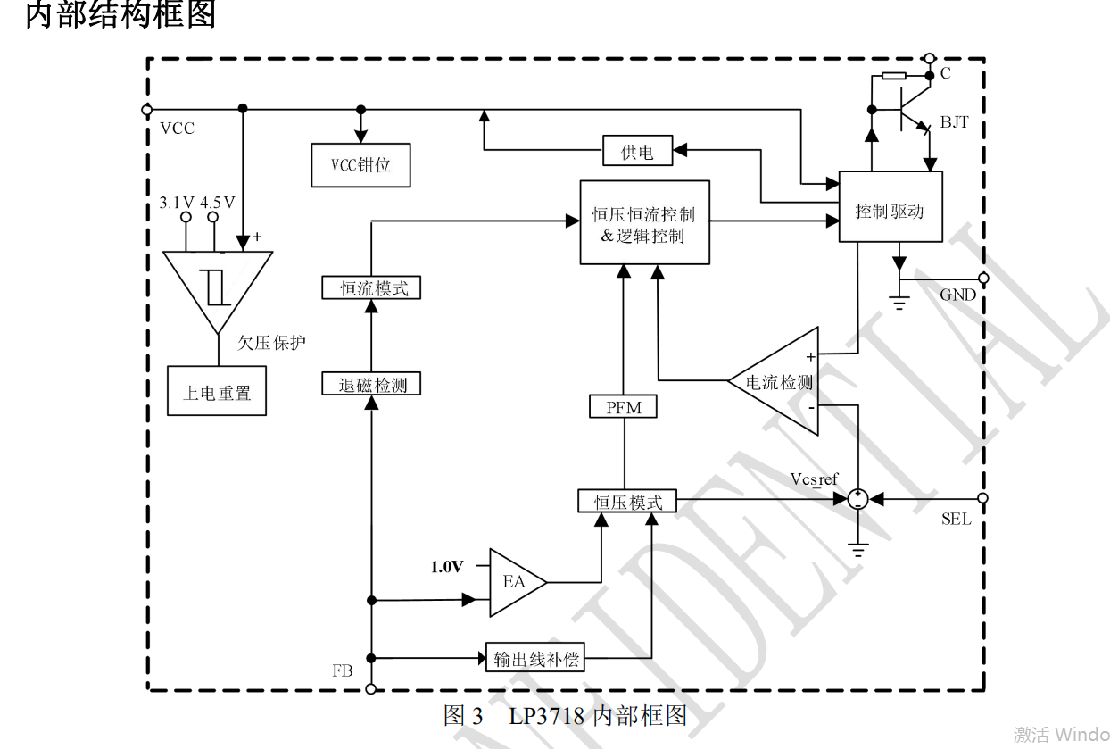 LP3718CD 是一款高度集成的隔離型適配器和充電器的自供電PSR控制芯片,外圍設計極其簡單。 LP3718 通過外置電阻,可調原邊峰值電流,再 通過變壓器原副邊匝比來設置輸出恒流點;通過設 定 FB 上偏電阻和下偏電阻來設置輸出恒壓點。 為了實現系統成本的致簡化,LP3718 內置啟 動電路,外圍不需要啟動電阻;采用自供電的方式 來取消輔助繞組 VCC 供電二極管。 為了實現更好的輸出電壓調整率,LP3718 內置 輸出線纜補償功能,可以通過設定 FB 外置上偏電 阻的值來調節輸出線纜補償值。 LP3718 集成了多種的保護功能,包括 VCC 鉗 位/欠壓保護,FB 腳上電阻開路保護,輸出短路保 護,輸出過壓保護以及過溫保護等保護功能。 LP3718 采用 SOP8L、ASOP6 以及 DIP7 封裝
