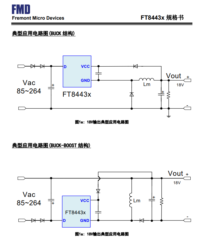 FT8443x采用超高壓工藝,內部集成高壓啟動電路,高壓功率開關,以及電流采樣電阻,減少了外部元器件,極大地簡化了系統應用。內置的頻率抖動和軟驅動設計能有效提高EMI性能。