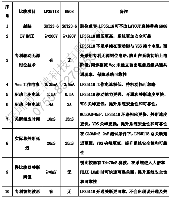 綜上所述,LP35118不僅完全兼容MP6908,而且還提供了多項額外的優(yōu)勢,包括高耐壓、快速關斷、集成VCC供電技術、整流管開通判定技術、多種工作模式兼容、外部元器件少以及過壓鉗位和欠壓保護。這些特性使得LP35118成為一個強大的替代選項,能夠在保持與MP6908兼容性的同時,提供更高的性能和可靠性。