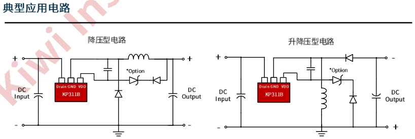 KP311B系列同樣是一款非隔離型、高集成度且低成本的PWM功率開關,適用于降壓型和升降壓型電路。其主要特點包括: