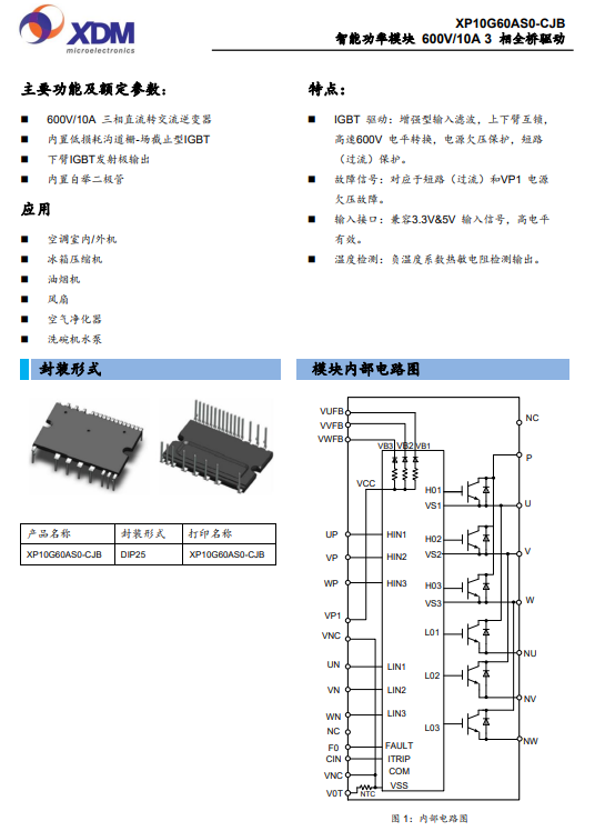 XP10G60AS0-CJBG國產智能功率模塊 600V/10A 3 相全橋驅動